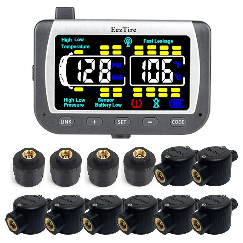 EEZRV TPMS12MixCB - Tire Pressure Monitoring System w/4 AT Sensors + 8 FT Sensors + Repeater